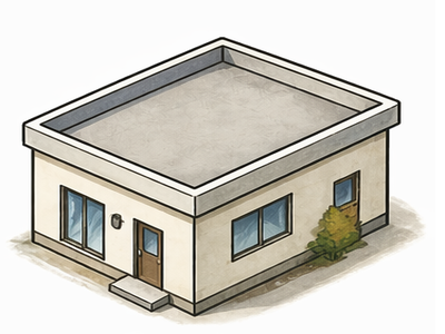 - スタイリッシュなデザイン: 平らな屋根は近代的で洗練された外観を提供します。都市の景観に調和し、ビルや商業施設などで広く採用されています。