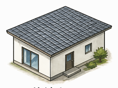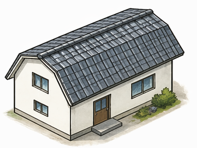 切妻屋根は、二つの傾斜面が頂部で合わさった三角形の形をした屋根です。屋根の傾斜が左右対称であり、日本の伝統的な建築物から現代の住宅に至るまで幅広く採用されています。形状がシンプルであるため、設計や施工が比較的容易で、特に雨水の排水効率が高い点が特徴です。