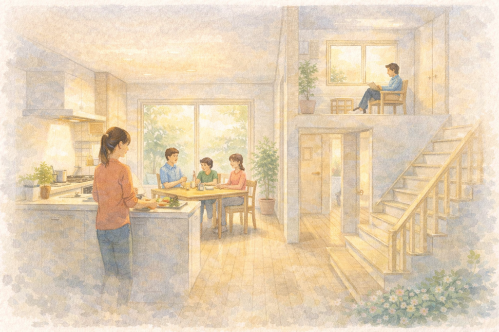 一方で、個々のプライベート空間も重要です。自分だけの時間や空間を持つことは、リラックスやリフレッシュに不可欠です。書斎や趣味の部屋、リラックスできるバルコニーや庭など、自分自身をリセットするための場所があることで、日常のストレスを軽減し、心のバランスを保つことができます。