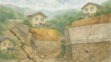 擁壁の崩壊や地盤の移動は、建物の基礎に大きな力を加えます。