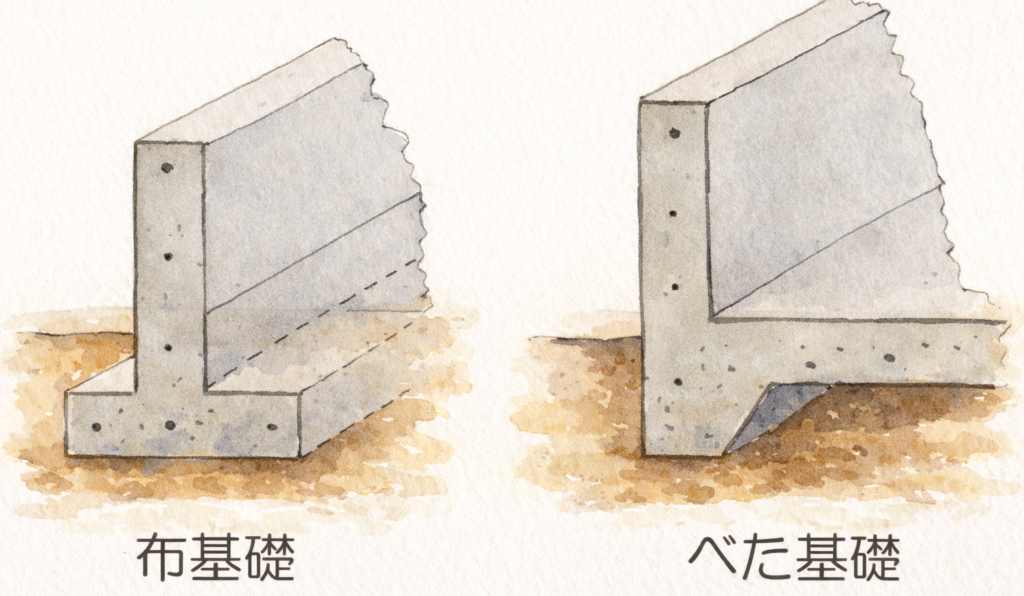 | 比較項目 | ベタ基礎 | 布基礎 |
